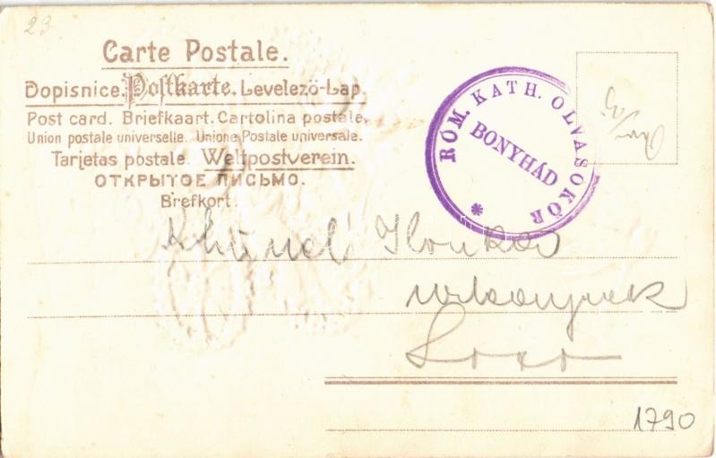 Art Nouveau, floral greeting art postcard. Emb. litho (EK)