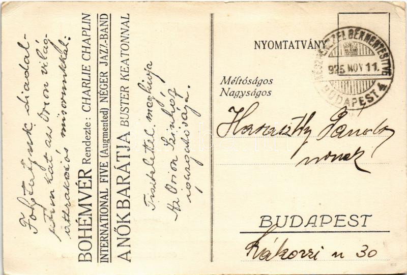 1925 Budapest V. Orion színház, Erzsébet híd, automobilok + "KÉSZ...