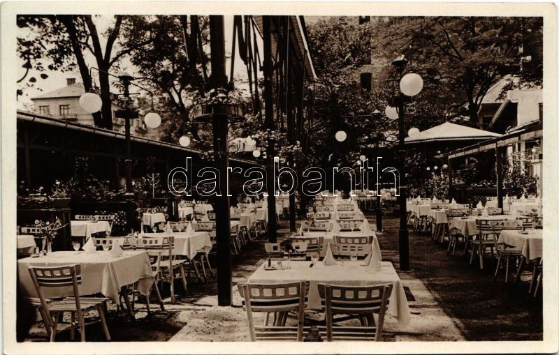 1937 Budapest VI. 1858 óta fennálló vendéglő a "Kéményseprő"-höz, kert. Aréna út 106. (ma Dózsa György út)
