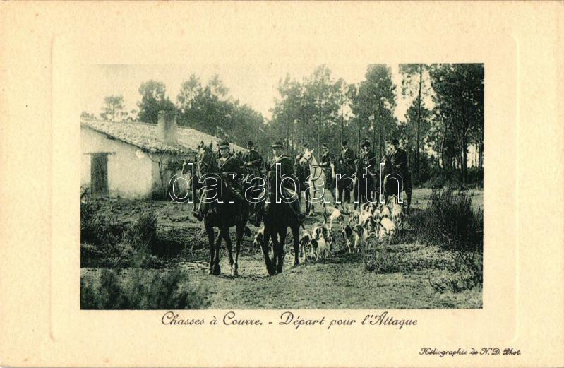 'Chasses á Courre - Départ pour l'Attaque' / hunters on horses, hunting dog, departure before the attack