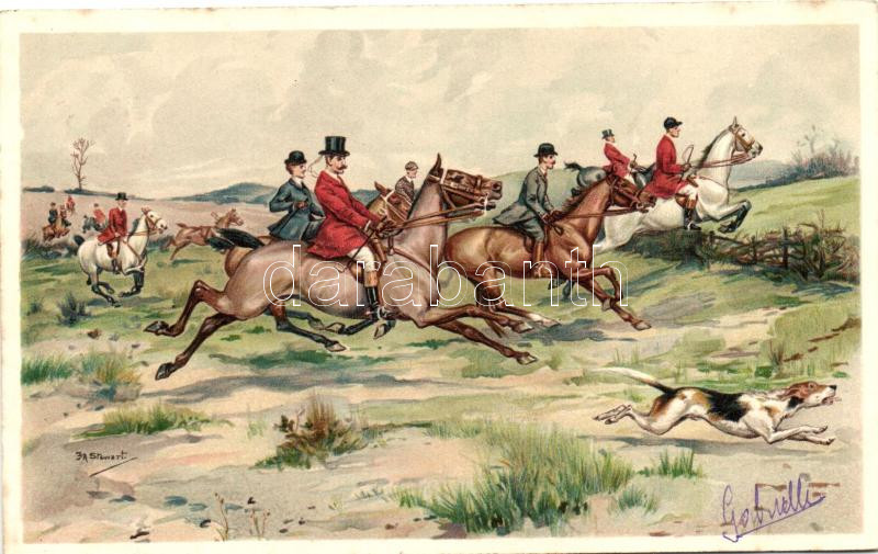 Hunters on horses, dogs, T.S.N. serie 602, s: J.A. Stewart