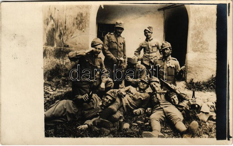 1916 Osztrák-magyar katonák csoportja italokkal / WWI Austro-Hungarian K.u.K. military, group of soldiers with drinks. photo