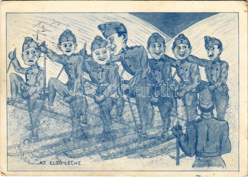 https://www.darabanth.com/en/469-Online-auction/469.0/Postcards/Militaria~1500033/1940-Az-elso-lecke-Katonak-sitanfolyama-Hungarian-military-art-skiing-soldiers-s-Balogh-~II3168935