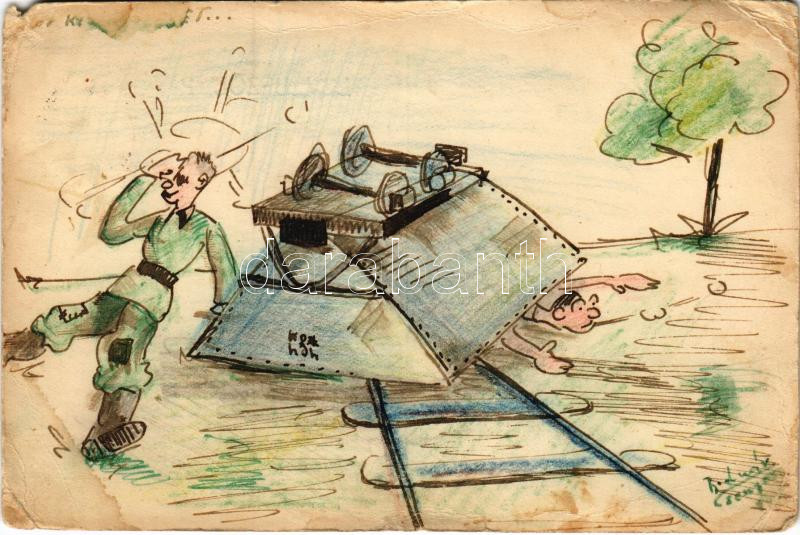 1940 Második világháborús magyar katonai humor, saját kézzel rajzolt s: Bodnár (EM)
