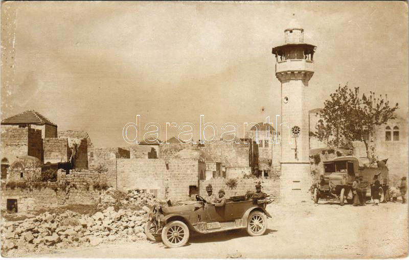 Első világháborús osztrák-magyar katonai tábori mozgó autóműhely Törökországban, teherautó / K.u.k. fahrbare Autowerkstätte Türkei / WWI Austro-Hungarian military mobile automobile repair shop in Turkey, soldiers, truck. photo (fl)