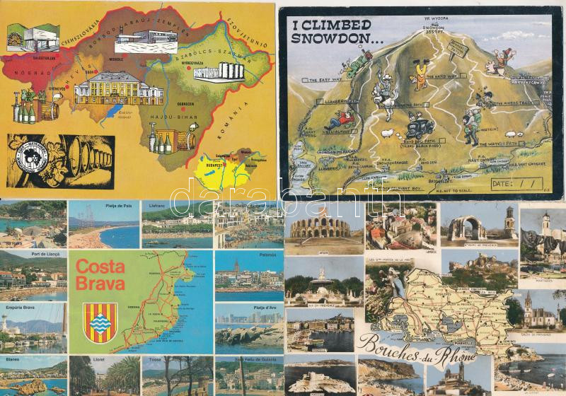21 db MODERN magyar és külföldi térképes képeslap / 21 modern Hungaria...