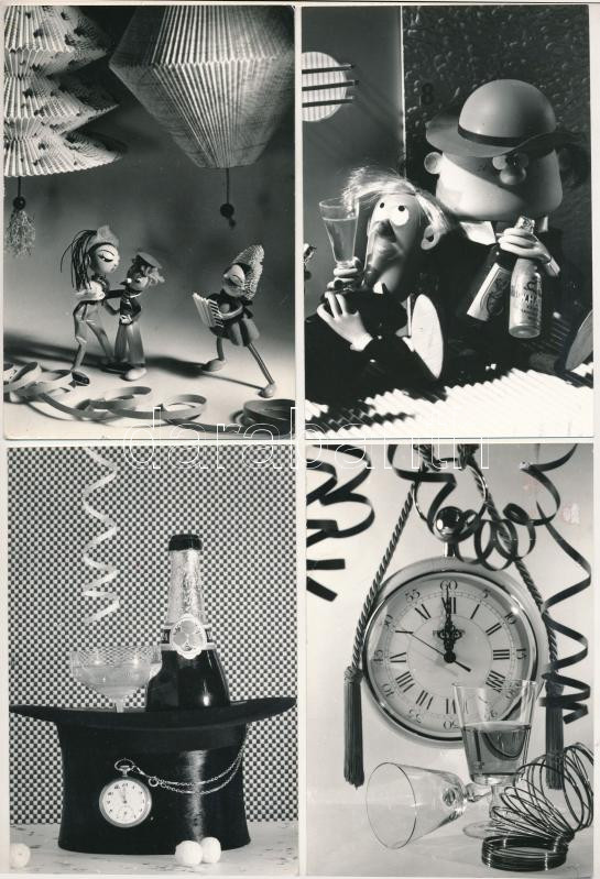 Description: 47 db MODERN magyar fekete-fehér retro újévi üdvözlő képeslap. Képzőművészeti Alap / 47 modern Hungarian retro black and white New Year greeting postcards