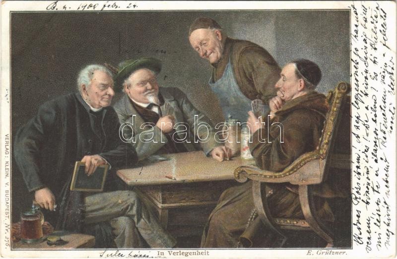 1900 In Verlegenheit / playing cards. Verlag Klein Nr. 276. s: E. Gütz...
