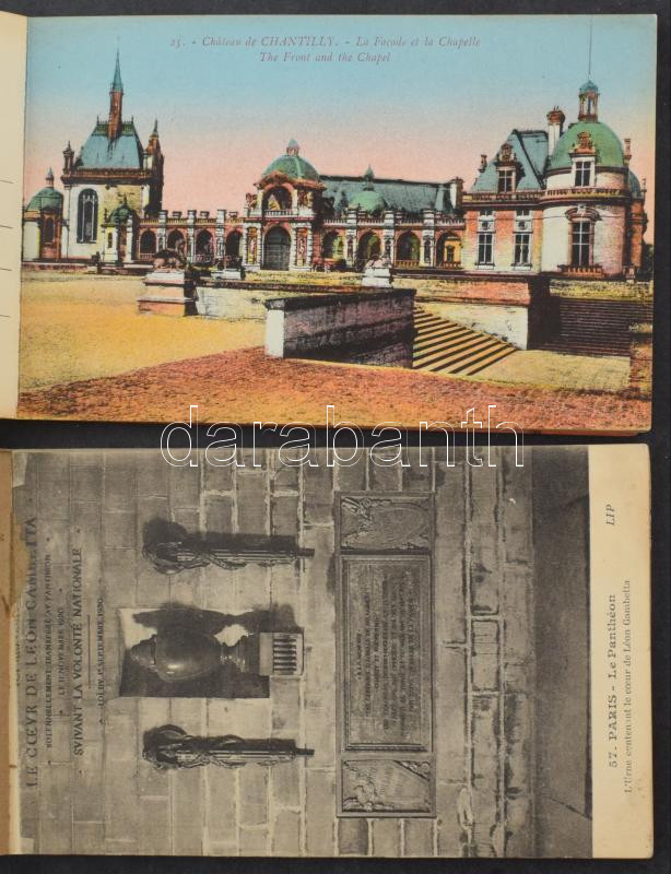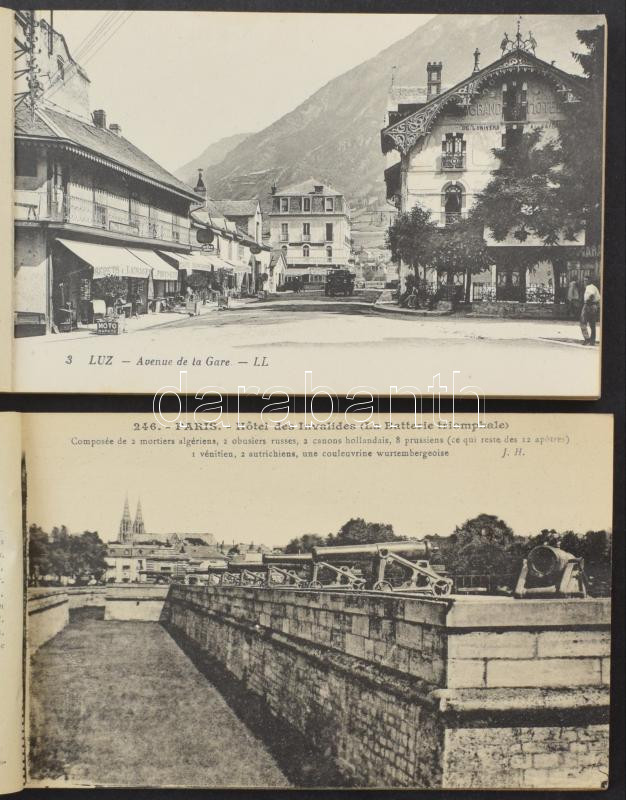 Description: 4 db RÉGI francia képeslap füzet / 4 pre-1945 French postcard booklet: L'Hotel des Invalides Paris, Luz-Gavarnie, Paris - Le Panthéon, Chateau de Chantilly