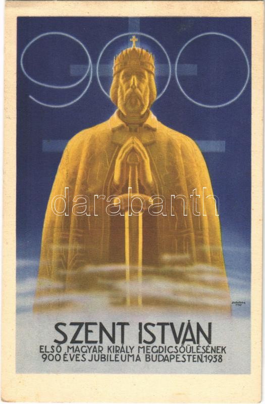 Description: 1938 Budapest XXXIV. Nemzetközi Eucharisztikus Kongresszus. Készüljünk a Magyar Kettős Szentévre! Szent István első magyar király megdicsőülésének 900 éves jubileuma / 34th International Eucharistic Congress s: Hollósi Endre (EK)