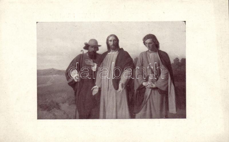 Az emmausi úton...; Luk. ev. 24:13-35; kapható a Sylvester könyvkereskedésben / Religious postcard (EK)