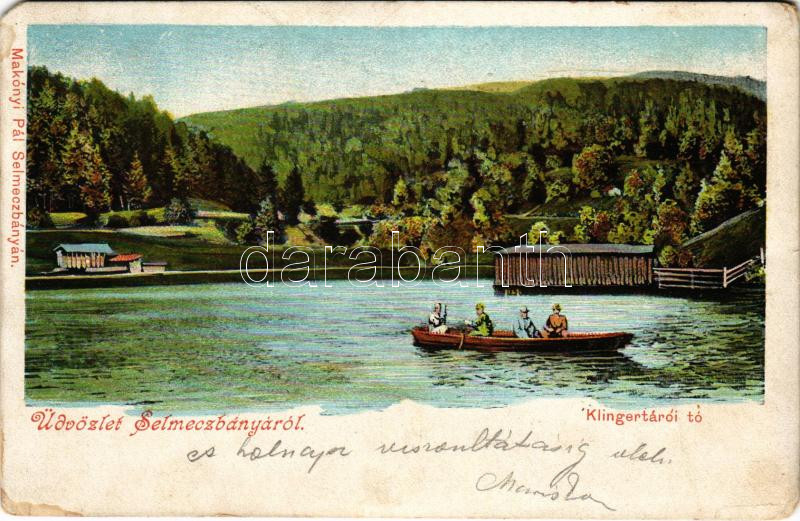 1907 Selmecbánya, Schemnitz, Banská Stiavnica; Klingertárói tó, csónakázók. Makónyi Pál kiadása / lake, rowing boat (EM)
