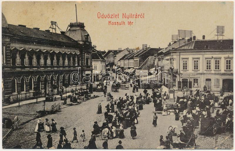 1909 Nyitra, Nitra; Kossuth tér, piac, Braun Vilmos és Einzinger Józse...