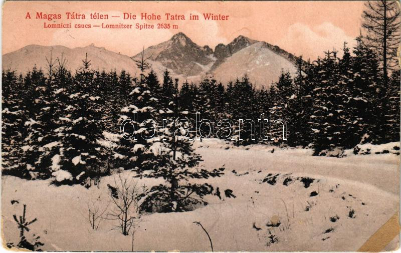 1917 Tátra, Magas-Tátra, Vysoké Tatry; Lomnici csúcs télen / Lomnitzer...