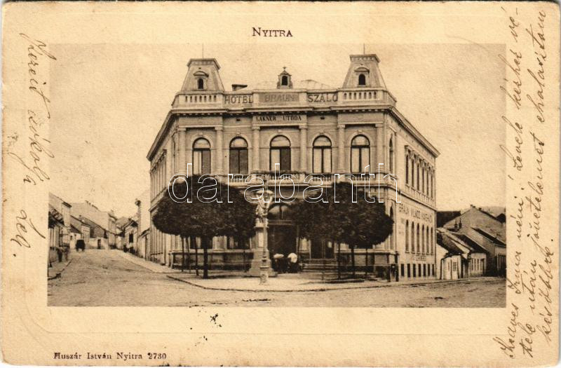 Nyitra, Nitra; Braun Vilmos szálloda és kávéház (Lakner utóda). Huszár...