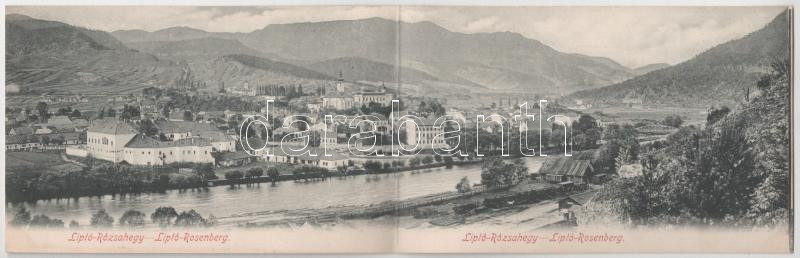 Description: Rózsahegy, Liptó-Rózsahegy, Ruzomberok; látkép, vasútállomás, zsinagóga. 2-részes kihajtható panorámalap. Feitzinger Ede No. 893/IIb L. 1905./ general view with railway station and synagogue. 2-tiled folding panoramacard (Rb)
