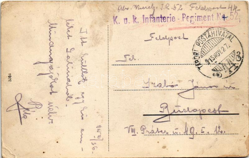 1915 Buchach, Bucsacs, Buczacz; Gimnazyum / grammar school + "K.u.K. Infanterie-Regiment No. 52." (EB)