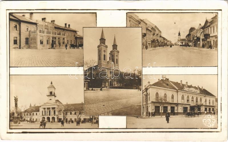 1942 Zombor, Sombor; városháza, templom, Vadászkürt szálloda, rendőr, Fő utca, üzletek. Schlotzer József kiadása / town hall, church, hotel, policeman, main street, shops (EK)