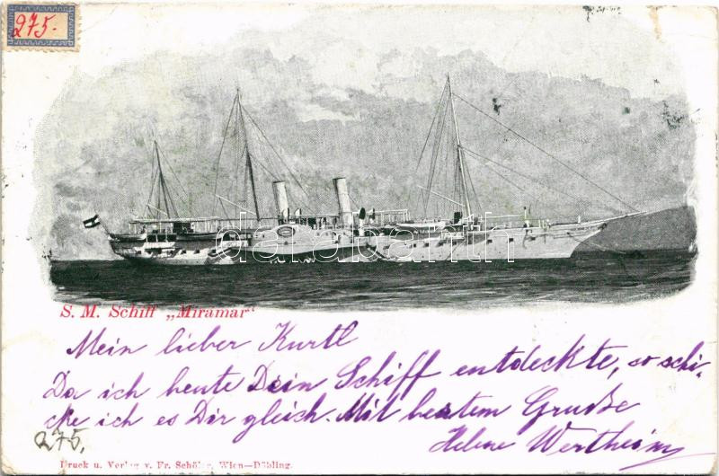 https://www.darabanth.com/en/469-Online-auction/469.0/Postcards/Warships~1500024/1898-Vorlaufer-SM-Schiff-Miramar-KuK-Kriegsmarine-Radjacht-SMS-Miramar-Osztrak-Magyar-~II3025709