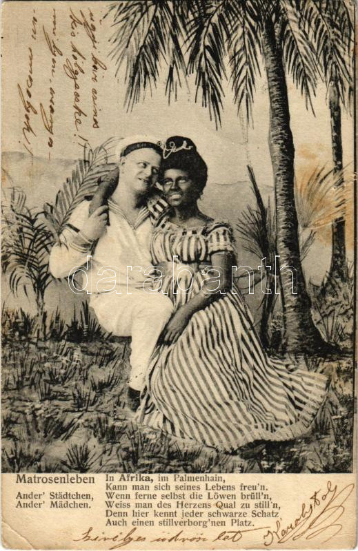 Description: 1903 K.u.k. Kriegsmarine Matrosenleben in Afrika / Osztrák-magyar haditengerész matróz Afrikában, propaganda / Austro-Hungarian Navy mariner in Africa, propaganda (EK)