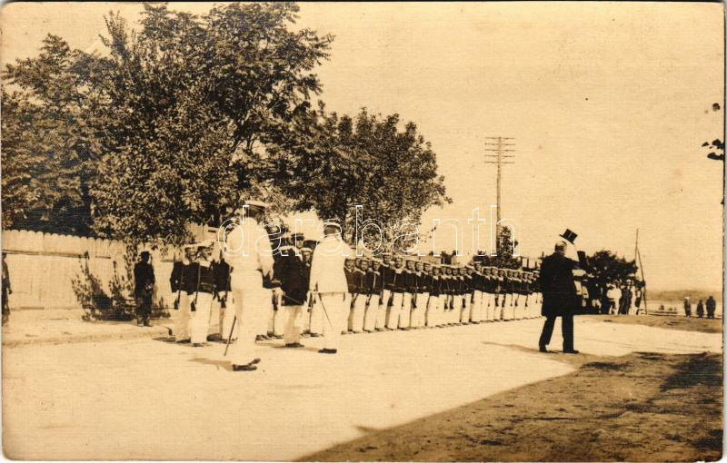 Description: 1916 Ruse, Russe, Rustchuk; Parade am Geburtstages S. Majestat. K.u.k. Kriegsmarine / Austro-Hungarian Navy Parade for the royal birthday of Franz Joseph, naval officers, mariners. photo (EB)