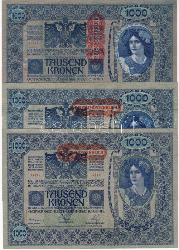 https://www.darabanth.com/en/47-Online-auction/47.0/Numismatics/~171/Korona-tetel-1902-1000K-3x-piros-Deutschosterreich-fny-sal-TIIplus-Csak-egyszer-hajtva-1916-1~II94486