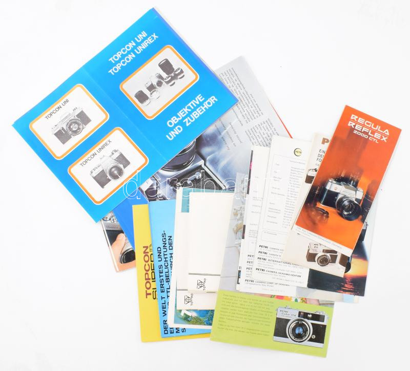 cca 1980 kb 15 db vegyes képes kamera, fényképezőgép, objektív katalógus, reklám