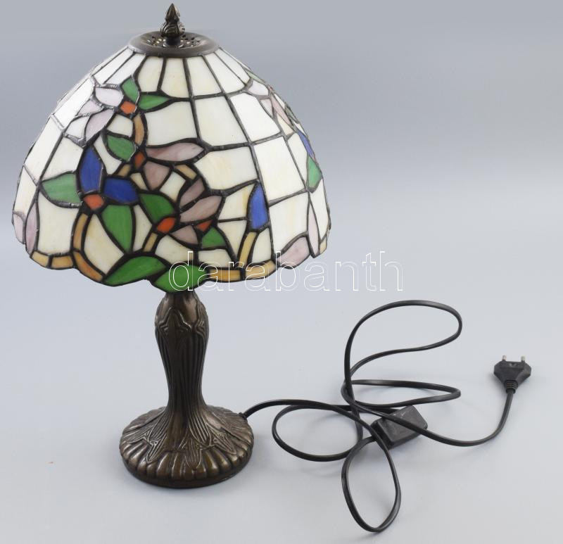 Tiffany jellegű asztali lámpa, jó állapotban, de 1-1 repedt mozaikkal,...