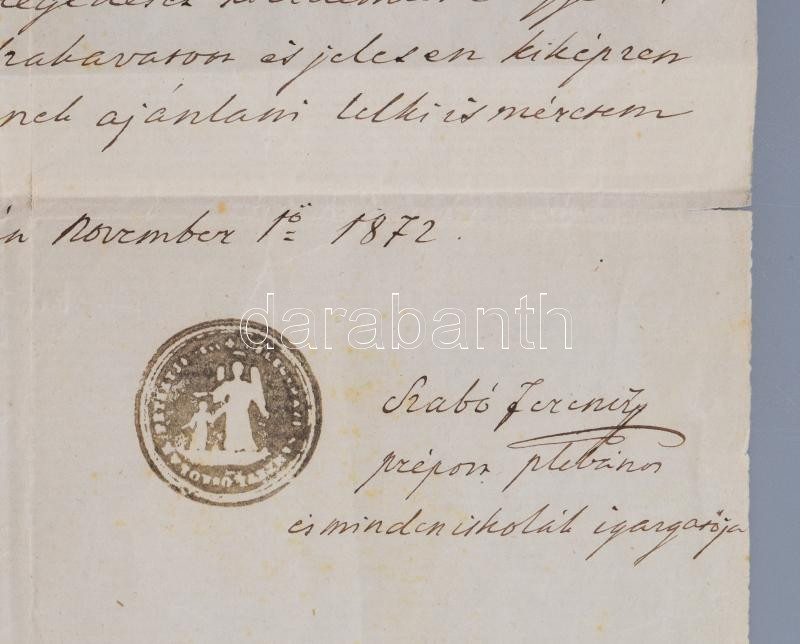 1872 Félegyháza (Kiskunfélegyháza), Szabó Ferenc plébános, iskolaigazg... https://www.darabanth.com/en/470-Online-auction/470.0/Art-and-other-collectibles/Documents~500024/1872-Felegyhaza-Kiskunfelegyhaza-Szabo-Ferenc-plebanos-iskolaigazgato-altal-kiallitott~II3184392