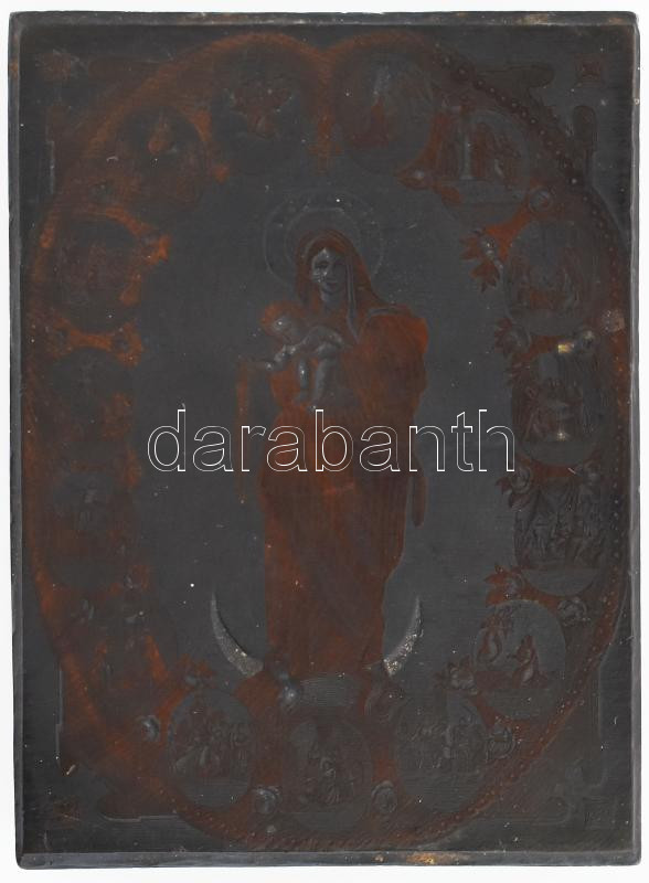 Mária a gyermek Jézussal, körben Jézus élete képekben - nyomódúc, 11x8...