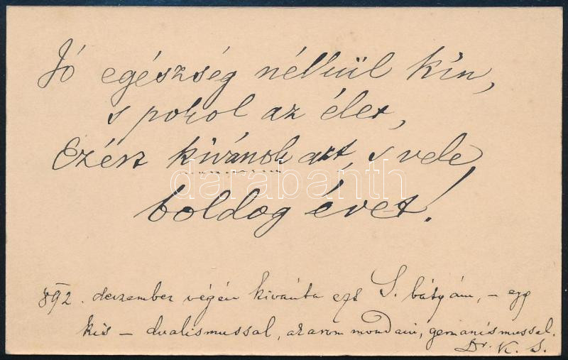1892 Kőrösi Sándor (1824-1895) ügyvéd, országgyűlési képviselő autográf sorai névjegykártyája hátoldalán