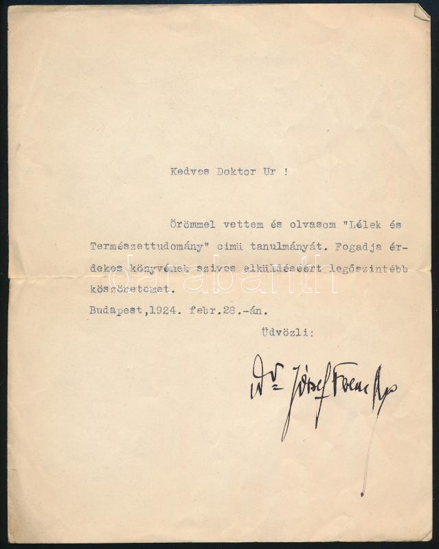 1924 Habsburg-Lotaringiai József Ferenc főherceg (1895-1957) gépelt kö... https://www.darabanth.com/en/470-Online-auction/470.0/Art-and-other-collectibles/Historical-documents-manuscripts~2000110/1924-Habsburg-Lotaringiai-Jozsef-Ferenc-foherceg-1895-1957-gepelt-koszono-sorai-autograf-a~II2970971