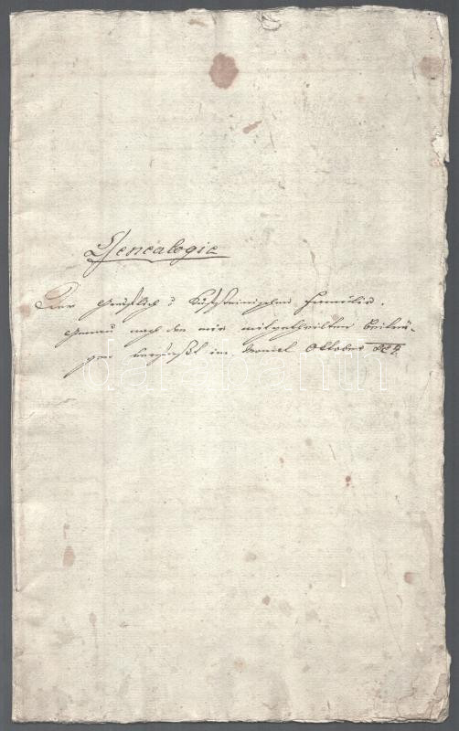 cca 1829 Genealógiai (leszármazási) táblázat, német nyelven, 8 beírt oldal, kissé viseltes állapotban, vízjeles papíron