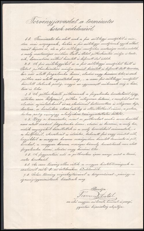 1909 Borászati tétel: Törvényjavaslat a természetes borok védelméről +... https://www.darabanth.com/en/470-Online-auction/470.0/Art-and-other-collectibles/Printed-Materials~1000014/1909-Boraszati-tetel-Torvenyjavaslat-a-termeszetes-borok-vedelmerol-plus-Meghivo-Borvasarral-es~II3180158