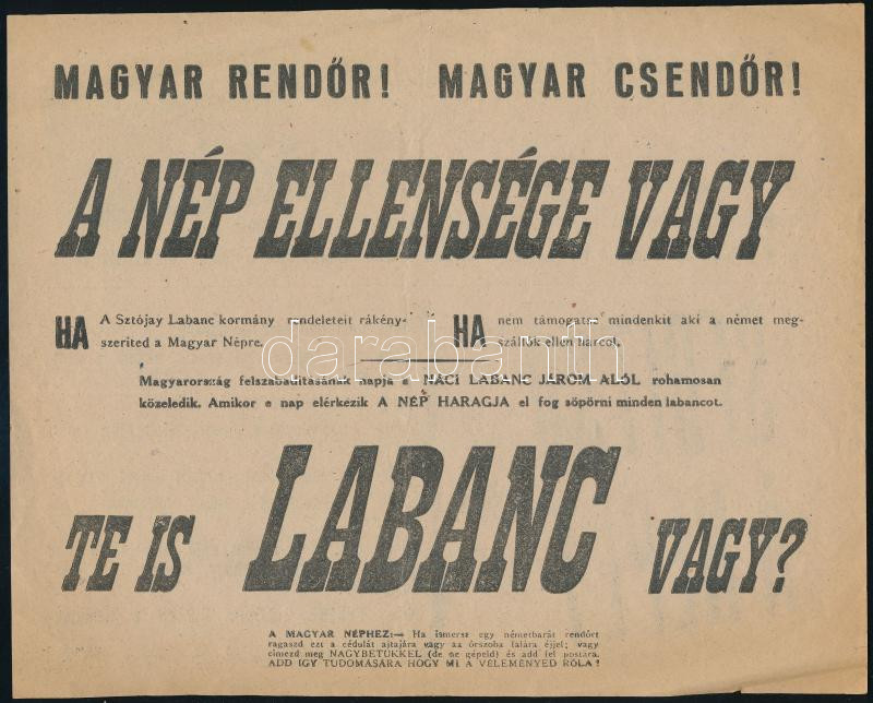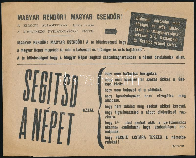 1944 "Magyar rendőr! Magyar csendőr! A nép ellensége vagy (...)", II. ...