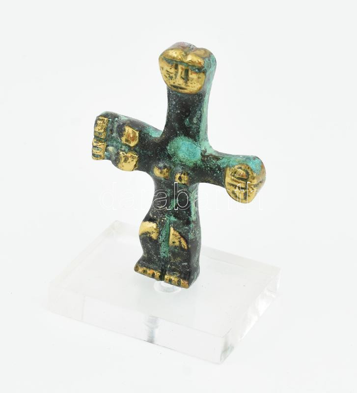 Antik görög szobor másolata, bronz, leírással, dobozban, m: 8,5 cm