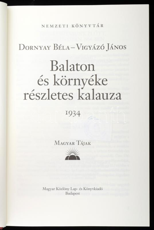 Description: Dornyay Béla - Vigyázó János: Balaton és környéke részletes kalauza (1934). Nemzeti Könyvtár 3. Bp., 2012, Magyar Közlöny. Kiadói kartonált papírkötés.