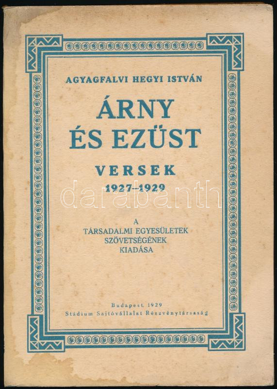 https://www.darabanth.com/en/470-Online-auction/470.0/Books/Books-Other-rarities~2000113/Agyagfalvi-Hegyi-Istvan-Arny-es-ezust-Versek-1927-1929-Bp-1929-Stadium-184-p-Kiadoi~II3181387