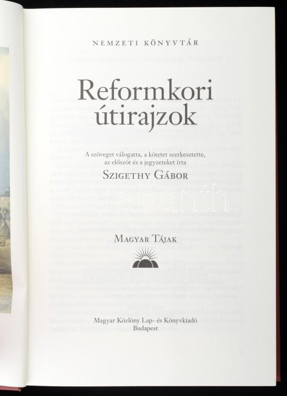 Szigethy Gábor: Reformkori útirajzok. Vál., szerk., az előszót és a je... https://www.darabanth.com/en/470-Online-auction/470.0/Books/Books-Travelling-Local-History~1000002/Szigethy-Gabor-Reformkori-utirajzok-Val-szerk-az-eloszot-es-a-jegyzeteket-irta--~II3183317