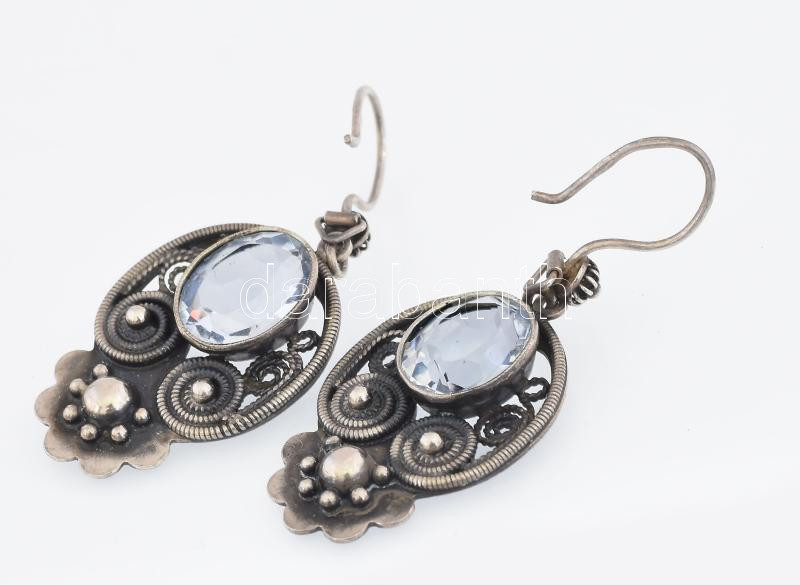 Ezüst (Ag) fülbevaló pár, filigrán díszítéssel, kő berakással, jelzett, bruttó: 12g