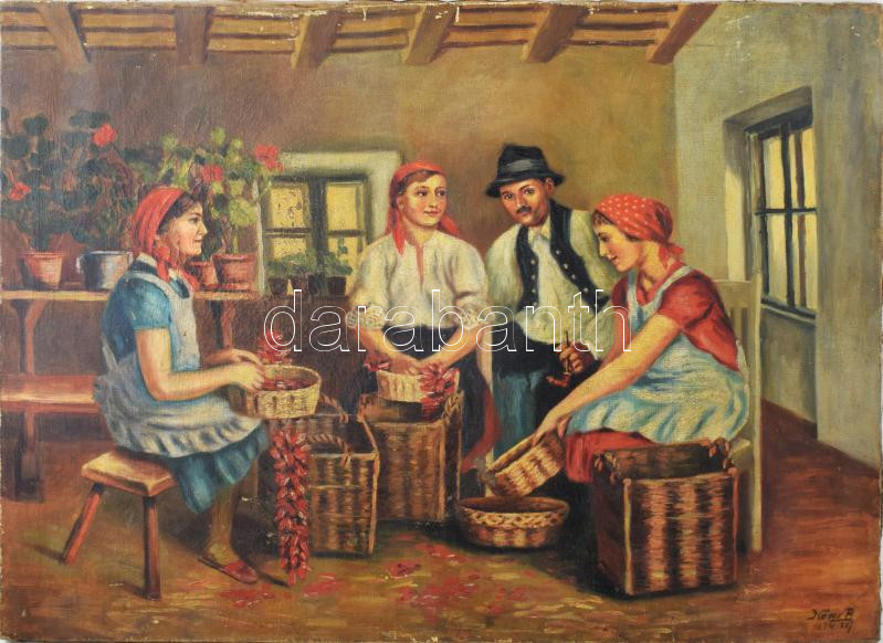Kásás (?) jelzéssel: Paprikafűzés, 1934. Olaj, vászon. Dekoratív faker...