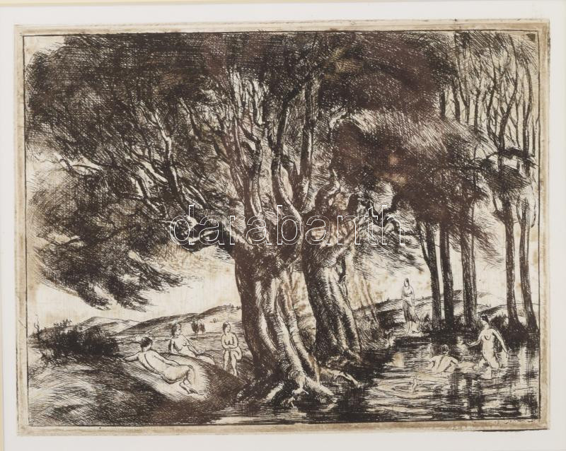 Toroczkai Oszvald (1884-1951): Fürdőző aktok. Rézkarc, papír. Jelzés n...