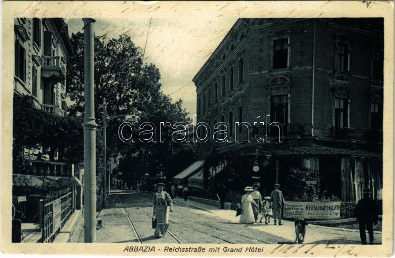 Abbazia, Opatija; Reichsstrasse mit Grand Hotel / street, restaurant (EB)