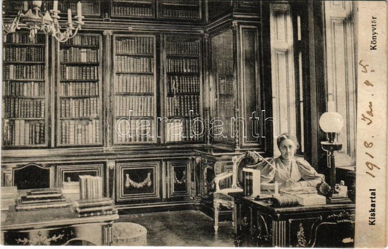 Kiskartal (Kartal), Podmaniczky kastély belső, könyvtár. Hátoldalon Bá...