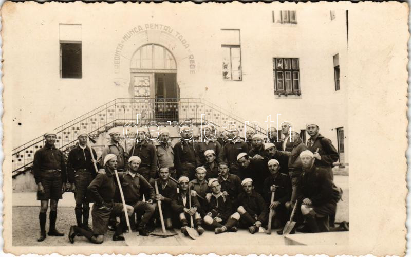 Description: Sepsiszentgyörgy, Sfantu Gheorghe; Credinta si munca pentru Tara si Rege, Straja Tarii / Román paramilitáris ifjúsági szervezet tagjai / members of the Romanian paramilitary youth organization. photo (fl)