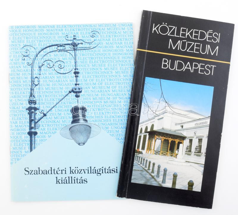 Description: 2 db budapesti múzeumi kiadvány, katalógus: Szilas Péter - Király Árpád: Szabadtéri közvilágítási kiállítás. A Magyar Elektrotechnikai Múzeum füzetei 3. Bp., 1993, Magyar Elektrotechnikai Múzeum. Kiadói tűzött papírkötés. + Közlekedési Múzeum, Budapest. Szerk.: Kocziánné Dr. Szentpéteri Erzsébet. (Bp., 1990, MTI Nyomda). Fekete-fehér és színes fotókkal illusztrálva. Kiadói papírkötés.