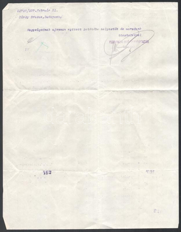 1927 Sárdy Brutus (1892-1970) festőművész, restaurátor részére a Pesti... https://www.darabanth.com/en/471-Online-auction/471.0/Art-and-other-collectibles/Documents~2000107/1927-Sardy-Brutus-1892-1970-festomuvesz-restaurator-reszere-a-Pesti-Hazai-Elso-TakarekpC3~II3192055