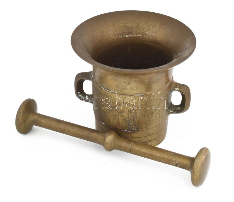 Bronz mozsár törővel, m: 12,5 cm, törő h: 23 cm