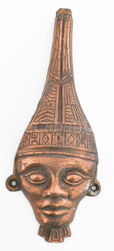 Bronzírozott fém fáraó fej dísz, kopott, m: 31 cm