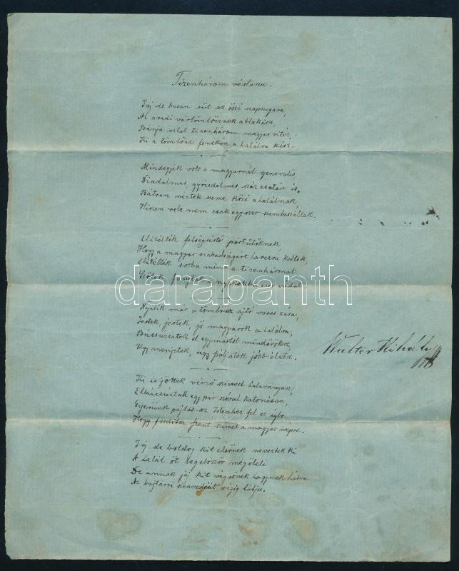 cca 1850 Walter Mihály: Tizenhárom vértanú c. verésnek autográf kézira... https://www.darabanth.com/en/471-Online-auction/471.0/Art-and-other-collectibles/Historical-documents-manuscripts~5500001/cca-1850-Walter-Mihaly-Tizenharom-vertanu-c-veresnek-autograf-kezirata-Az-1848-as-szabadsC3~II3190942